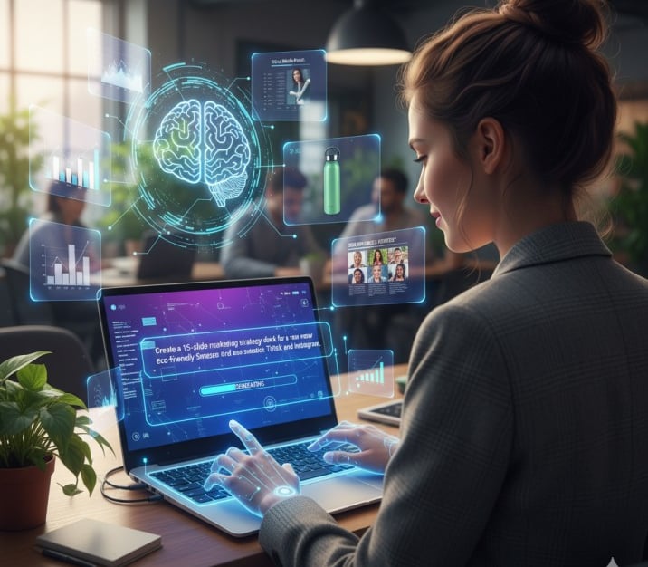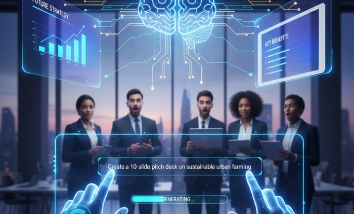 Imagine needing a 10-slide deck on "The Future of Remote Work." Instead of spending 4 hours on design and content, you type a single prompt and get a professional draft in 90 seconds. You spend the saved time on refining your core message and practicing your delivery, not wrestling with alignment.